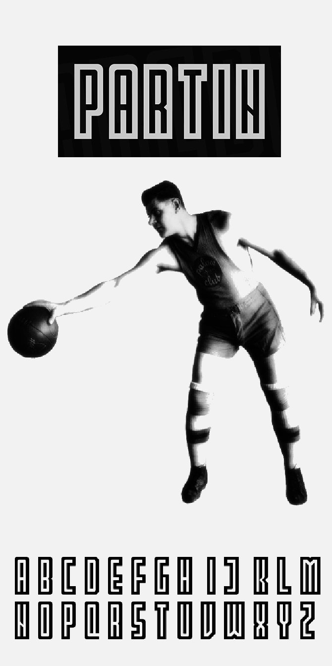 PARTIN is clean tall and font inspired by basketball. Alphabet and serbian cyrillic included. Font is made with fontstruct and contains upper case and alternative small caps letters. Please read the license and give credit if you use it.